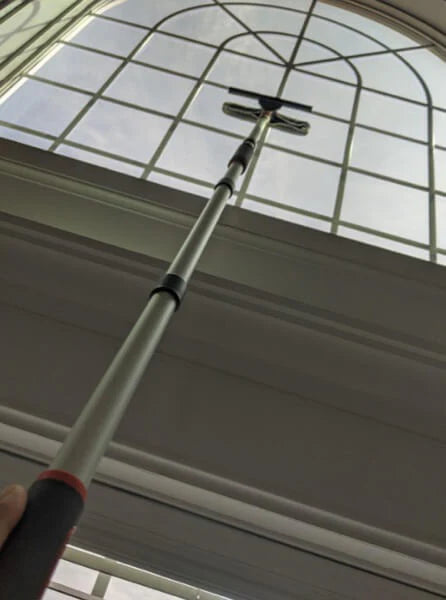 Cu tija extensibilă ClearView™, poți curăța ferestrele înalte fără să te urci pe taburet sau scară. Simplu, sigur și fără stres!